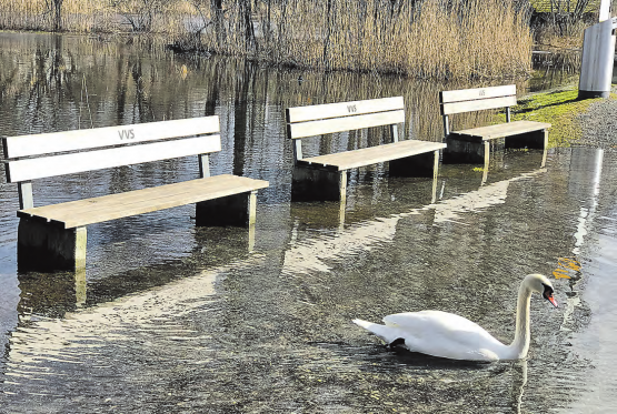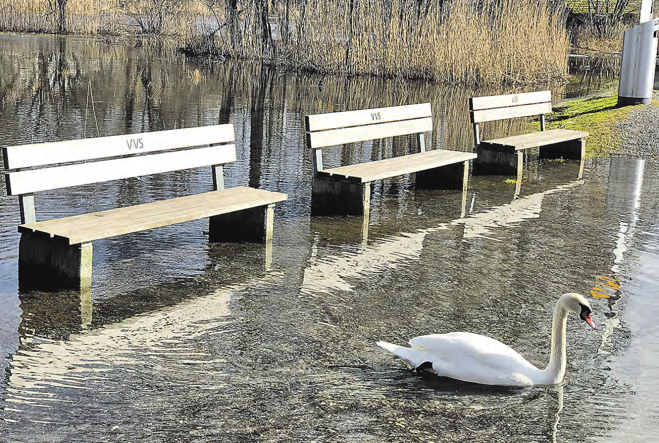 (Mitg.) Nachdem sich die zugefrorenen Überschwemmungsgebiete am Hallwilersee zeitweise sogar zum Schlittschuhlaufen eigneten, sind die Temperaturen inzwischen wieder markant angestiegen. Frühlingswetter hielt Einzug und das Eis verwandelte sich wieder in einen See.