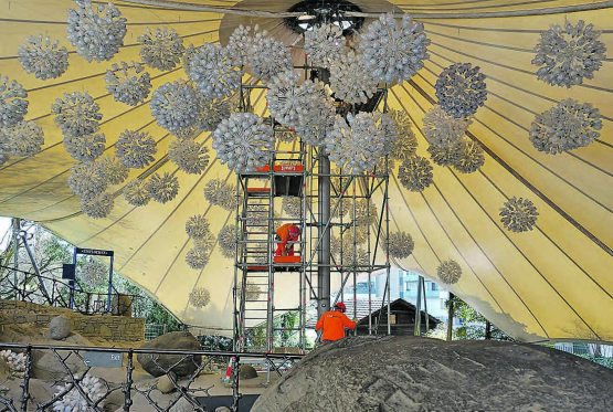 rc. Künstler Micha Aregger aus Beinwil am See zeigte das Projekt «Eisflocken» rund anderthalb Jahre lang im Gletschergarten Luzern. In den letzten Tagen wurde die Installation nun wie geplant abgebaut (siehe Bild) und zügelte nach Beromünster, genauer: ins KKLB (Kunst und Kultur im Landessender Beromünster). Hier werden die «Eisflocken» zu «Sommerflocken». Das Projekt ist eine Weiterführung der bisherigen Kunstinstallation, an der rund 2000 Menschen mitgewirkt haben: Die Flocken bestehen aus Holzkugeln, Holzstäben und gebrauchten PET-Flaschen. In diesen geschlossenen Flaschen befinden sich Fingerabdrücke, geschriebene Botschaften und damit persönliche Spuren der Teilnehmenden. Durch Corona erschwert, kamen von den 76 mitwirkenden Schulklassen nur 23 Klassen dazu, die Installation im…