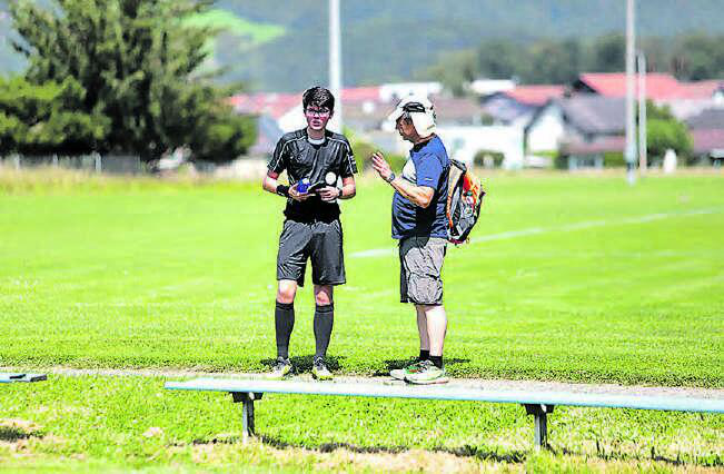 rc. Es war kein Fussballknüller, den Joyce Häfeli am vergangenen Samstag gepfiffen hat, grosse Karrieren starten im Verborgenen. In Rohr standen sich in einem Testspiel das Team Regio Aarau a und die Mädchen U15 des Grasshoppers Clubs Zürich gegenüber. Häfeli ist mit 16 Jahren der Älteste auf dem Platz. Unter den Zuschauenden befindet sich auch sein Schiedsrichter-Betreuer, der sogenannte «Götti» oder «Coach», der das Tun des jungen Schiedsrichters genau beobachtet. Viele Probleme gab es auf dem Platz nicht «Ich habe aber sicher etwa drei Abseits-Tore gegeben», wird sich der Gontenschwiler später selbstkritisch zeigen. «Die Perspektive auf dem Platz ist schon eine andere als von den Stehplätzen. Und ohne Linienrichter ist das sowieso schwierig».