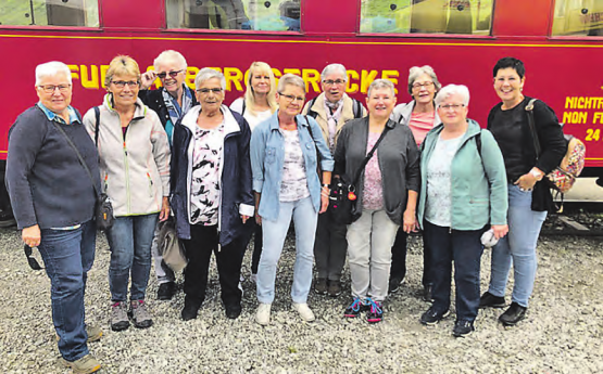 (Eing.) Kürzlich trafen sich elf Frauen der Seniorengruppe GYM 60+ des Satus zu einer «Handtäschlireise». Schon frühmorgens wurden die Frauen vom Car an den verschiedenen Einstiegsorten abgeholt und nach Realp geführt, wo sie in die Furka-Dampfeisenbahn umstiegen. Vorbei an blühenden Alpenrosen, grasenden Kühen und schmelzenden Schneefeldern fuhren sie mit der Bahn nach Oberwald, wo der Bus sie wieder in Empfang nahm. Die Fahrt ging weiter auf den Grimselpass, wo Mittagspause und Zeit für einen kleinen Spaziergang war. Zurück im regnerischen Unterland liessen die Frauen den wunderschönen und ereignisreichen Tag im Gontenschwiler Egg ausklingen. (Bild: zVg.)