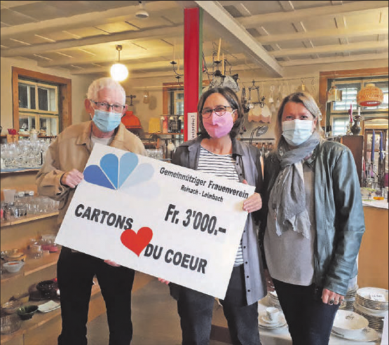 (Eing.) Dem diesjährigen Brockifest des Gemeinnützigen Frauenvereins Reinach-Leimbach war ein prachtvoller Sommerwettertag gegönnt, dies war somit eine hervorragende Ausgangslage, um ein rundum erfolgreiches Fest zu feiern. Den ganzen Tag über herrschte draussen im Garten und Kaffeezelt sowie drinnen in der Brockenstube reger Betrieb. So konnte dank der vielen Helfer und Helferinnen so einiges an Erlös erwirtschaftet werden. Dieser geht dieses Jahr an «Cartons du coeur». Die Organisation, welche auch auf Basis der Freiwilligenarbeit beruht, sammelt und liefert Grundnahrungsmittel an Familien und Einzelpersonen, die sich in einer Notlage befinden. Auf dem Bild von links nach rechts zu erkennen: Vor kurzem durfte Jakob Haller, Vizepräsident der Organisation, den aufgerundeten Reinerlös im…
