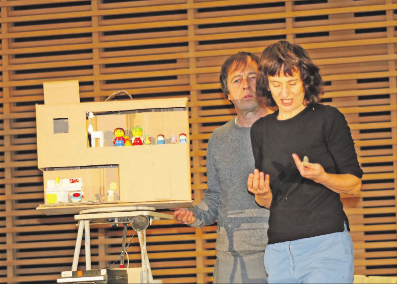 ei. Am vergangenen Sonntag fand in der reformierten Kirche Beinwil am See ein etwas anderer Gottesdienst statt. Es gab keine herkömmliche Predigt, sondern Pfarrer Andreas Pauli begrüsste die Theatergruppe «Sgaramusch». Die beiden Schauspieler überraschten die Gottesdienstbesucher damit, mit einfachen Requisiten, eine Geschichte zu erzählen, die überall in der Schweiz passieren könnte. So bauten die beiden Künstler, Nora Vonder und Stefan Colombo, innert weniger Minuten mit einer einfachen Kartonschachtel ein Wohnhaus. In diesem Wohnhaus lebten verschiedene Familien oder Einzelpersonen, dargestellt mit kleinen Spielzeugfiguren. Sogar ein Dinosaurier und eine Giraffe lebten im Haus. Doch plötzlich läutete es an der Haustür. Ein fiktiver Schauspieler holte das Haus ab, um es in die Ferien…