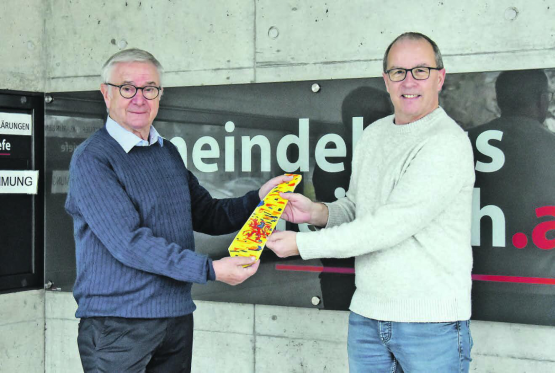 mars. An Silvester, am letzten Tag des Jahres, hat der Reinacher Gemeindeammann Martin Heiz offiziell seinen letzten Amtstag (siehe auch separater Bericht auf Seite 11). Am 29. Dezember erfolgte nun die symbolische Amtsübergabe an seinen Nachfolger Jules Giger. Dies nicht, indem Heiz einen Stapel Ordner in die Hände von Giger drückt, sondern stilvoll mit der Übergabe der Amtskrawatte. Sie wurde einst in sehr geringer Stückzahl hergestellt. Das abgebildete Exemplar ist denn auch so gut wie neu. Martin Heiz hat das auffällige «Unikat» mit Reinacher Löwen nur zu besonderen Anlässen getragen. Die Amtsübergabe ist selbstverständlich bereits seit einiger Zeit im Gange. Jules Giger begleitete Martin Heiz bereits bei Geschäften, die sich im kommenden Jahr fortsetzen werden und es haben…