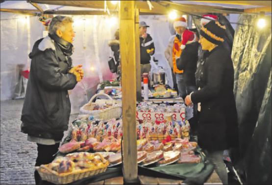 rc. Die Wetterprognose für das Oberwynental war nicht ideal und tatsächlich blieb es am letzten Samstag tagsüber oft trüb und regnerisch. Das hielt Organisatorin Rösli Merz (auf dem Gruppenbild oben rechts zusammen mit ihrem Ehemann Kurt, dem gewählten Gemeindeammann Jules Giger und «First Lady» Isabelle) nicht davon ab, mit Zuversicht und Engagement die Stände aufzustellen, Einteilungen vorzunehmen und natürlich ihren eigenen Markstand einzurichten. Immer wieder liessen Wind und Regen Schlimmes befürchten, doch als die Weihnachtsausstellung auf dem Reinacher Marktplatz schliesslich los ging, blinzelte sogar noch die Sonne am Horizont hervor und beim Eindunkeln zeigte sich gelegentlich der blaue Himmel. Am Markt stellte sich dann eine friedliche Stimmung ein. Ob Würste von Burkhart oder…