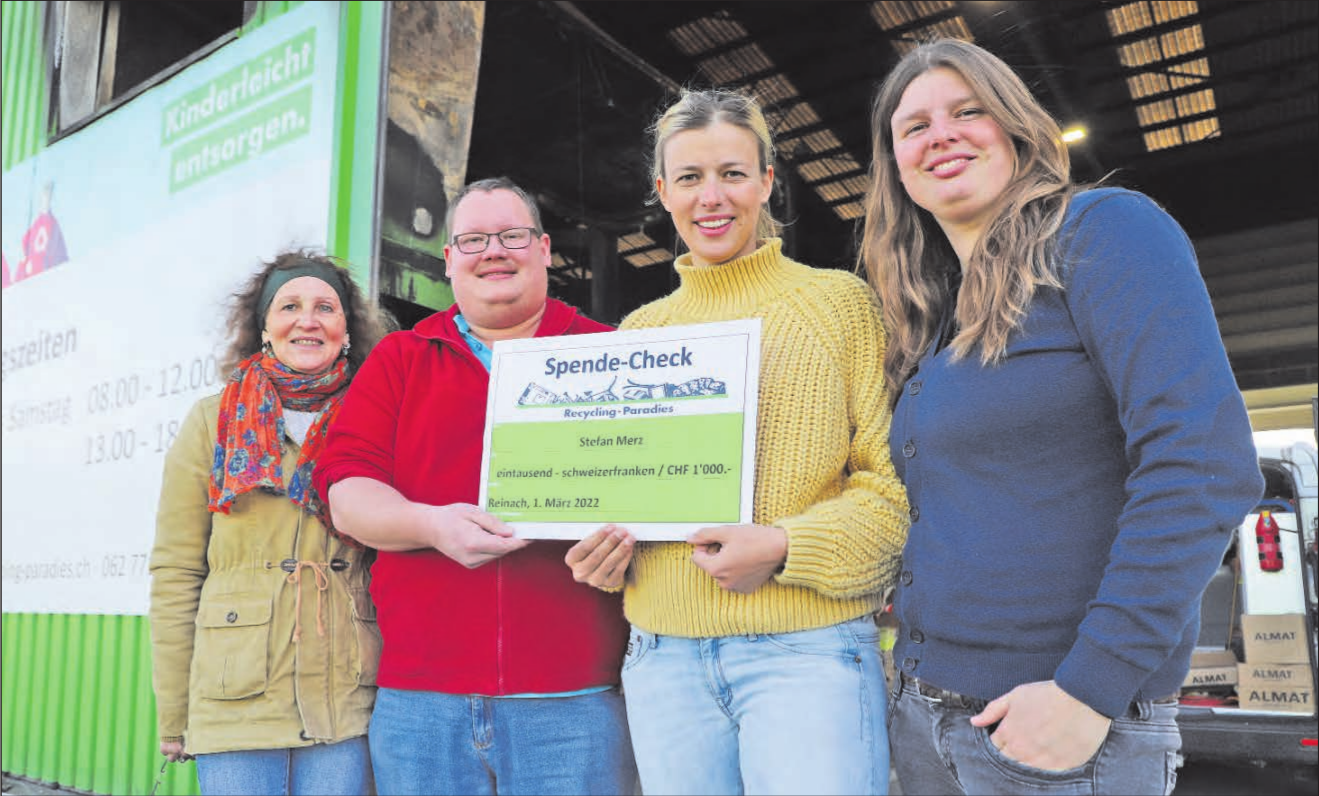 rc. «Schreiben Sie aber nicht zu viel», sagte der 33-jährige Stefan Merz, der in Begleitung seiner Mutter Katharina Merz der Einladung des Recycling Paradies folgte. Er sei da eher bescheiden und erwarte nicht, dass man ein Theater mache, nur weil er seine Pflicht erfüllt habe. Davon wollten Olivia und Karin Bertschi, Leiterinnen des Recyclinghofes aber nichts wissen «Durch das richtige Handeln hat Stefan Merz eine Katastrophe verhindert», ist man sich einig. Tatsächlich zeigen die Spuren…
