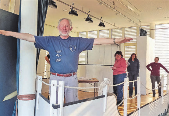 rc. «Ein grosser Meilenstein in der Geschichte unserer diesjährigen Inszenierung», jubeln die Leute des Theaters «Improvisorisch», nachdem der letzte Nagel des Bühnenbilds eingeschlagen wurde. Im Bild zu erkennen ist Bühnenbildner Leonardo Di Caprio alias Bido Fuhrer, der das Kreuzfahrtschiff MS Sausewind auf seine Fahrtauglichkeit prüft. «Alles hält, Leinen los!» scheint er gleich rufen zu wollen. «Viele fleissige Schiffsbauerinnen und Schiffsbauer waren nötig, damit das Kreuzfahrtschiff MS Sausewind in der Aula Gränichen «zu Wasser» gelassen werden konnte», heisst es bei den Theaterleuten weiter, die sich einige Jahre gedulden mussten, ehe sie bald wieder auf der Bühne vor Publikum auftreten können. «Der riesige Aufwand hat sich gelohnt, und so steht das Schiff nun bis zur Premiere am…