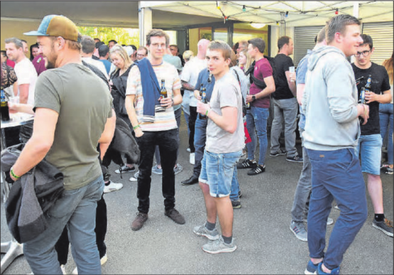 aw. Die zehnte Auflage der Loco-Loco-Party der Damenriege Moosleerau zog vor allem die jüngere Generation in ihren Bann, der Ansturm war immens. «Die - ran an die Eier - Party» lautete das Motto. Entsprechend waren Turnhalle und Barbereiche geschmückt. Ostereier grüssten von den Kletterstangen, lächelnde Osterhasen von den Ringen unter der Turnhallendecke oder über der mobilen Shötli-Bar.Wie OK-Präsidentin Rebekka Hunziker auch, hüpften die Damen der er Damenriege «Playboy-like» mit Häschenohren hinter den Theken oder dem Bratwurstgrill hin und her. «dj-ref-dj.ch» heizte den Gästen mit dem passenden Sound über Mitternacht hinaus kräftig ein, während draussen auf dem Atrium die «Leute» Abendsonne und die Maskenfreiheit genossen. Zwei typische Exemplare waren der Reitnauer Tom und Tobias…