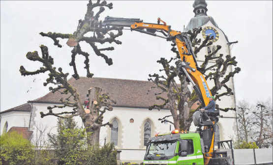 hg./psi. Es hat sich schon länger abgezeichnet, dass einer der rund 120-jährigen Lindenbäume beim Treppenaufgang vor der Reinacher Kirche krank ist. Ein Baumexperte hat im Auftrag der Kirchenpflege den Baum untersucht und festgestellt, dass der Stamm im Innern hohl, morsch und von einem Pilz befallen ist. «Dadurch ist der Baum zu einem Sicherheitsrisiko geworden für Passanten und Kirchenbesucher. Es war damit zu rechnen, dass plötzlich ein Ast wegbrechen könnte», erklärt Kirchenpflegepräsident Peter Siegrist. Die Kirchenpflege hat deshalb entschieden, den kranken Lindenbaum zu fällen. Vergangene Woche war es soweit, Mitarbeiter des Forstamtes Reinach haben sich an die Arbeit gemacht, um den Baum Stück für Stück zu zersägen. Wie die Kirchenpflege informiert, will sie den gefällten Baum zu…
