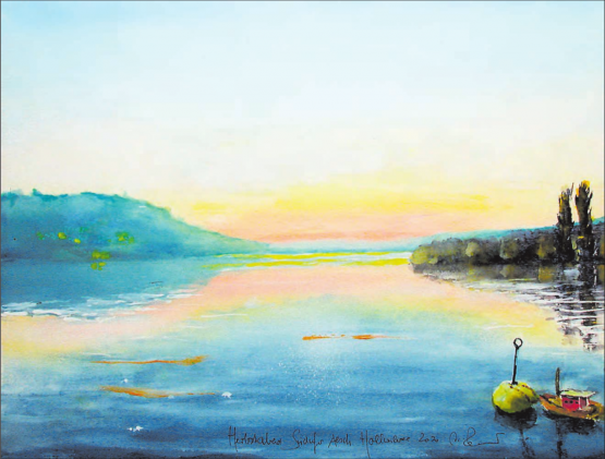 ro. An einem Herbstabend am Seeufer Aesch Hallwilersee war ein besonderer Zauber in der Luft, wie ich dies oft erlebt habe. Der See und die Landschaft ruhen in sich selbst. Ton in Ton in Pastellfarben und Ton für Ton wie ein bezaubernd lyrischer Blues ausklingend. Das Zauberhafte dieser Stimmung wird spielerisch unterstützt vom hinzu gedachten Holzschiffchen an der Boje. Die tiefgreifende und doch ruhige Stimmung ist einladend und zugleich aufbietend – nicht im Gestern herumzusuchen und nicht für das Morgen zu sinnieren – ganz im Hier und Jetzt zu sein und einfach in der Stimmung zu leben und sich von dieser tragen zu lassen. Festgehalten hat David Zehnder diese stille Seestimmung von Aesch aus mit seinem Fotogefühl, und ich durfte mich erinnern und zu einer gemalten Bildgeschichte…