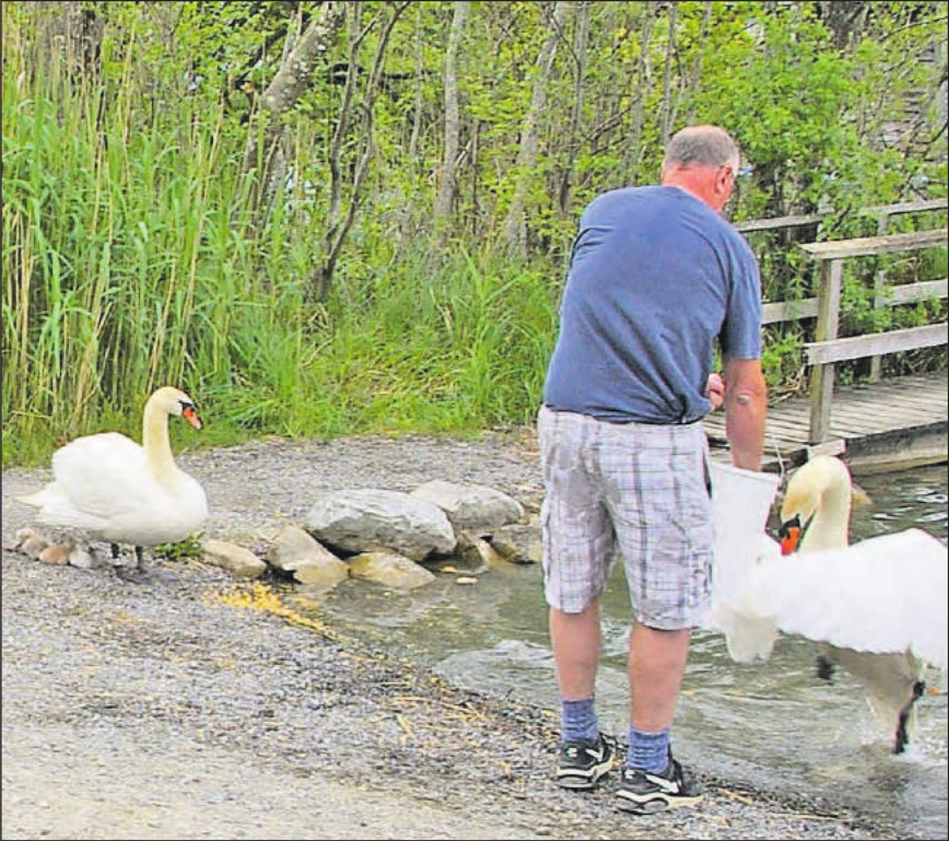 hh. Thomas Eichenberger, mit Mikrofon aus der Führerkabine und für alle verständlich, erklärte, dass es dieses Jahr sehr wenig Nachwuchs gegeben habe, da der Sturm mehrmals die Nester zerstörte. Schwanenpaare hätten sich zwar aufgerafft, ein zweites Nest zu bauen, wobei sie auch dieses Mal kein Glück gehabt hätten, und wiederum von Sturm überrascht wurden.