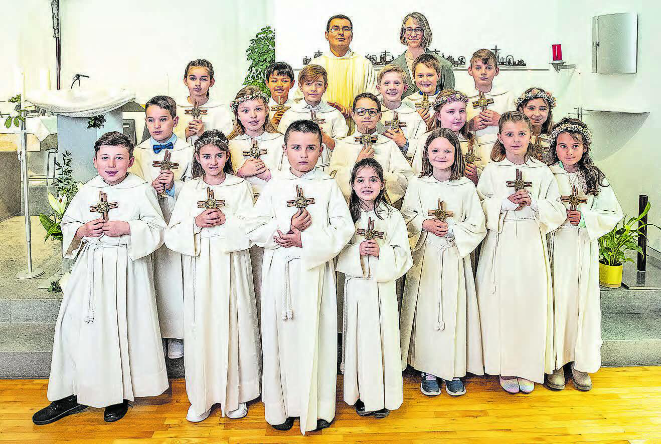 (Eing.) Am Sonntag, 1. Mai feierten weitere insgesamt 33 Kinder die Erstkommunion. Zum Thema: «Jesus, du bisch mini Sonne» bereiteten die Katechetinnen Rahel Müller und Manuela Fischer die Buben und Mädchen auf die 1. heilige Kommunion vor. In diesem Jahr durften insgesamt 53 Kinder aus der Pfarrei Menziken in vier Gottesdiensten ihre Erstkommunion feiern. An dieser Stellen danken wir allen Eltern, die in diesem Jahr die Kinder im Unterricht begleitet und auch all jenen, die bei den Vorbereitungen für die Feiern mitgeholfen haben. Rahel Müller, Manuela Fischer, Pater Luis Reyes und Pfarrer Piotr Palczynski. (Bilder: zVg.)