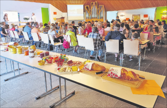 (Eing.) Der Einladung zum «Chelefest» mit Brunch im Kirchgemeindehaus Dürrenäsch folgten über 120 Personen. Die Sechstklässler bereicherten den Festgottesdienst mit fröhlichen Mundartliedern und einem selbst einstudierten Theater zur Frage, was Jesus zwischen seiner Auferstehung und Auffahrt gemacht hat. Ausserdem hielt Sozialdiakon Joel Ringgenberg, der im Sommer sein vierjähriges Studium am Theologisch-Diakonischen Seminar (TDS) Aarau abschliessen wird, seine Abschiedspredigt zum Thema «Genuss». Als Überraschung konnten alle Besucher eine frischgebackene Waffel geniessen.