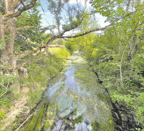 mars. Die Dimensionen sind deutlich kleiner, dennoch erinnert das grüne Erscheinungsbild der Wyna bei der Brücke bei der Ortsgrenze Gontenschwil-Zetzwil beinahe an den Amazonas. Es ist das Ergebnis der Renaturierung mit den variablen Tiefen des Bachbettes des vielfach verlangsamten Wasserflusses, welches Wassergras und Sumpfdotterblumen gedeihen lässt.