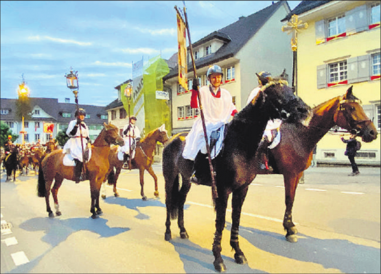 kho. Am Morgen um 5.30 Uhr startete die Prozession im Flecken. Manch einer war noch etwas verschlafen ob der frühen Tagwache, doch voller Vorfreude auf das Kommende. Reiter und Wanderer wussten: heute ist perfektes Pilgerwetter angesagt. Beim Zählen der Pferde kam man auf ziemlich genau Hundert. Der 18 Kilometer lange Weg entlang der Grenzen von Beromünster nahm seinen Anfang. Im Schlössliwald folgte bereits die erste Kurzpredigt von Pfarreileiterin Theres Küng. In Hasenhusen wurde der Ehrenkranz feierlich übergeben. Es ging vorbei an vielen liebevoll hergerichteten Hausaltären am Wegesrand, an vielen geschmückten Fenstern und extra perfekt in Ordnung gebrachten Höfen…