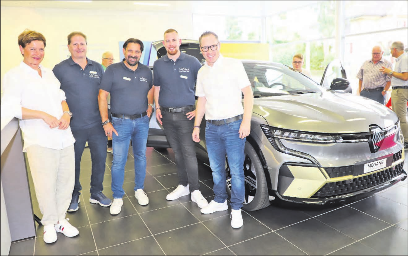 rc. Mit etwas Nebel und dem eindringlichen Sound von Leila K «Electric» wurde in der Wyna Garage Menziken der Renault Megane E-Tech 100% electric enthüllt. Mit einer Reichweite von bis zu 470 Kilometern birgt er in seinem Inneren die aktuellste Technologie in der E-Mobilität. Kundendienstleiter David Greco stellte im Gespräch mit Verkaufsleiter Fabio Toma den geladenen Gästen die vielen Vorzüge des brandneuen Autos vor. Zusammen enthüllten sie schliesslich den Wagen, den sich das Publikum danach aus nächster Nähe anschauen konnte. Claudia Meyer, Generaldirektorin der Renault Suisse SA beehrte die Präsentation im Wynental ebenfalls. Sie unterstrich während des Apéros gegenüber dem Wynentaler Blatt, dass sie den Kontakt zu den Vertriebspartnern regelmässig und sehr gerne pflege, «denn…