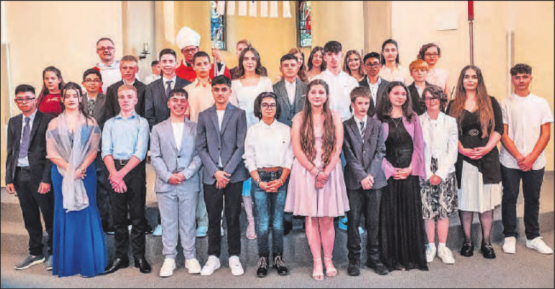 (Eing.) Insgesamt 55 Firmanden der 8. Klasse der Pfarrei St. Anna Menziken haben sich im laufenden Schuljahr auf die Firmung vorbereitet. Kürzlich firmte Diözesanbischof Felix Gmür aus Solothurn die Jugendlichen in zwei Gottesdiensten. Auf den Bildern sind nebst den Jugendlichen auch Bischof Felix Gmür und Pfarrer Piotr Palczynski zu sehen. (Bilder: zVg.)
