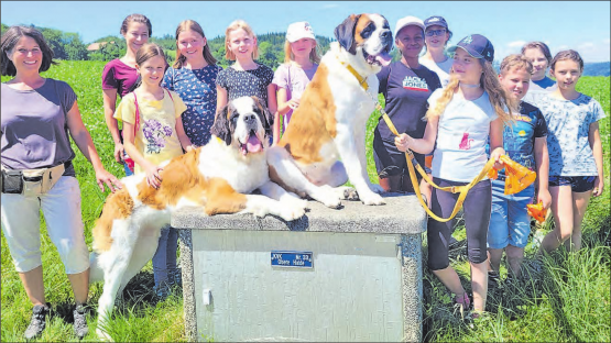 So wurde jeder Gast herzlich begrüsst durch Evita, die siebenjährige Bernhardinerdame. Die riesige Hündin vermochte allen ein Lächeln ins Gesicht zu zaubern. Beste Voraussetzungen, um mit den wunderbaren Tieren einen Spaziergang zu unternehmen! Die Kinder durften nacheinander eine Bernhardinerdame führen. Sie lernten dabei die Leine korrekt in die Hände zu…