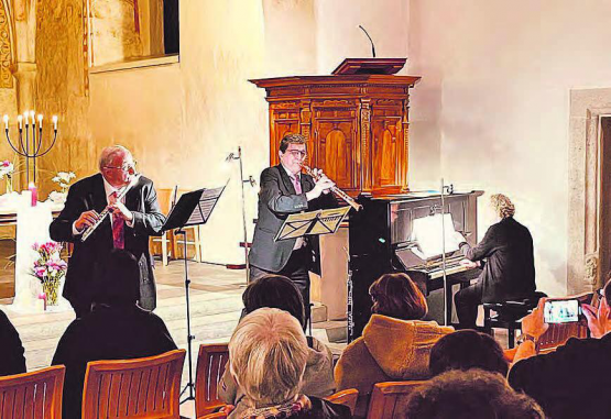 (Eing.) Bereits zur Tradition geworden ist das Konzert zum Ewigkeitssonntag in . Pfarrerin Maria Doka begrüsste zum Konzert. Regula Grehn (Klavier), Hans-Dieter Lüscher (Orgel), Hugo Immoos (Querflöte) und Walter Luginbühl (Oboe) boten den zahlreich erschienenen Besucherinnen und Besuchern ein abwechslungsreiches Programm mit Stücken aus der ganzen Welt. Walter Luginbühl hatte ein japanisches sowie ein tschechiches Stück bearbeitet. Neue, inspirierende Klänge erfüllten die Kirche Unterkulm. Die Freude, mit welcher die sehr gut aufeinander abgestimmten Kirchenmusiker musizierten, übertrug sich auf die Zuhörerinnen und Zuhörer. Es dürfen alle auf einen überaus gelungenen Abend, welcher mit grossem Applaus endete, zurückblicken. Ein herzlicher Dank geht vonseiten der Kirchgemeinde an alle…