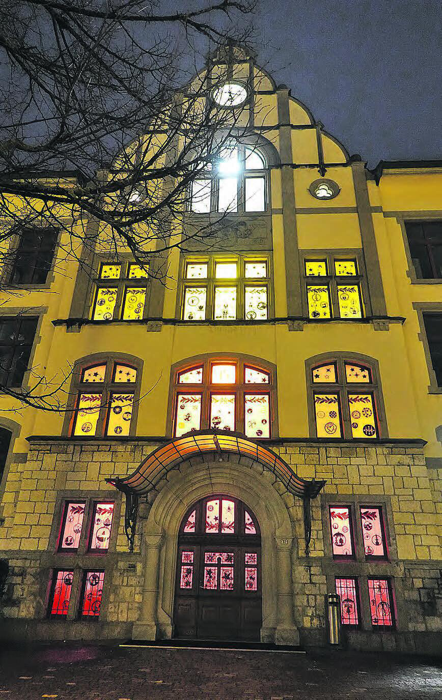 Wie ein Goldregen hängt die Reinacher Weihnachtsbeleuchtung über der dicht befahrenen Hauptstrasse. Der Feierabendverkehr rollt unentwegt. Zeit, den trüben Dezemberabend sobald als möglich in der warmen Stube zu verbringen. Und doch ist etwas anders: Der Mittelteil des Centralschulhauses mit dem prächtigen Eingang erstrahlt mit Schnee- und Weihnachtskugeln voller Märchenfiguren in allen Formen und Grössen. Es findet die feierliche Eröffnung des Adventsfensters statt.