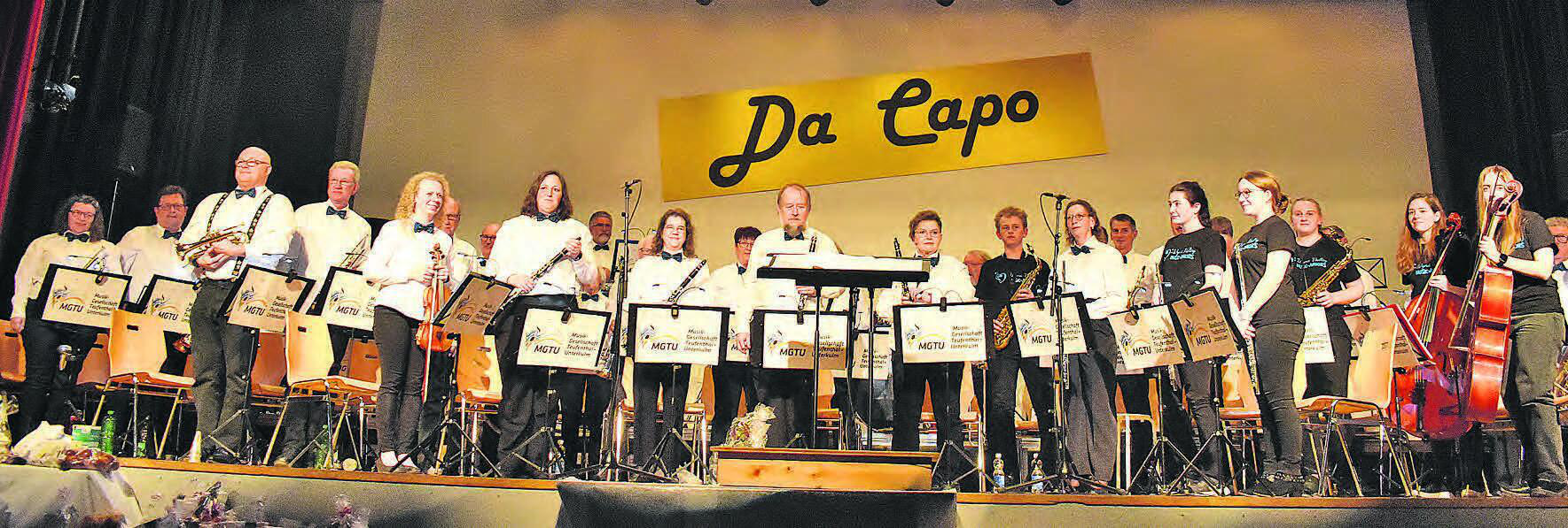 Unter der Leitung von Rafael Jastrezebski spielte die Musikgesellschaft Teufenthal-Unterkulm zu Höchstform auf, begleitet im ersten Konzertteil durch die Wyna Valley Music Juniors. Ob als charmante Moderatorin, Sängerin, als Wortkünstlerin oder Comiczeichnerin – das Frölein Da Capo gewann die Herzen des Publikums – ob zusammen mit der Musikgesellschaft oder als Ein-Frau-Orchester – im Nu.