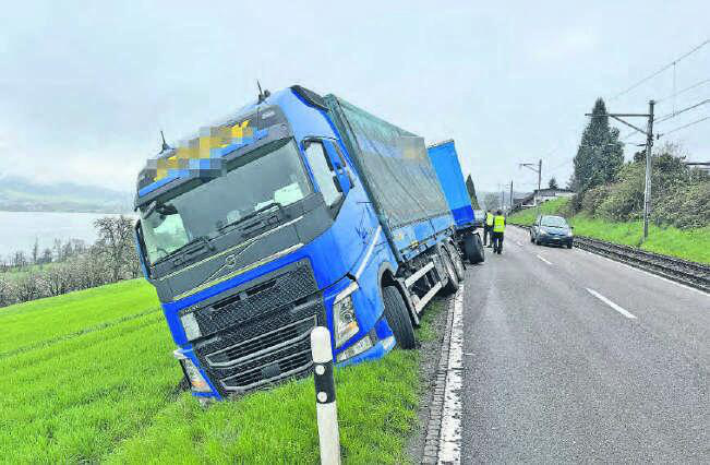 pz. Am vergangenen Montagmorgen kam ein Anhängerzug von der Strasse ab und blieb in der abfallenden Böschung stecken. Für die Bergungsarbeiten musste die Strecke gesperrt werden. Der Lastwagen mit Anhänger war um 10.50 Uhr auf der Seetalstrasse von Beinwil am See in Richtung Birrwil unterwegs. Dabei musste der 38-jährige Fahrer einen anderen Lastwagen kreuzen und fuhr versehentlich über den rechten Fahrbahnrand hinaus. In der Folge sank der schwere Anhängerzug im nassen Wiesland ein und blieb in der leicht abfallenden Böschung stecken. Verletzt wurde niemand. Der Lastwagen wurde beschädigt. Zudem entstand Landschaden. Das Ausmass des Schadens kann derzeit noch nicht beziffert werden. Für die aufwändige Bergung musste die Strecke bis um 16 Uhr gesperrt werden. Die Feuerwehr leitete den…