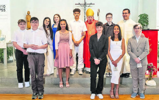 Eine der drei Firmungen im Pastoralraum Aargau Süd fand in Unterkulm statt. Insgesamt 36 Firmandinnen und Firmanden der 8. Klasse des Pastoralraums Aargau Süd haben sich im laufenden Schuljahr 2022/23 auf die Firmung vorbereitet. Am Wochenende vom 27./28. Mai 2023 firmte Mgr. Pier Giacomo Grampa, em. Bischof von Lugano, die Jugendlichen auch in einem Gottesdienst in der Bruder Klaus-Kirche Unterkulm. (Bild: zVg.)