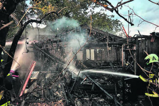 pz. Am Dienstagabend brach in einem Ferienhaus am Hallwilersee ein Brand aus. Das Gebäude wurde ein Raub der Flammen. Das Häuschen stand am Ufer des Hallwilersees unterhalb von Birrwil. Anwohner sahen am Dienstag, 11. Juli, kurz nach 20 Uhr, dass Flammen aus dem Gebäude schlugen. Die alarmierte Feuerwehr rückte mit einem Grossaufgebot an und fand das mehrheitlich aus Holz gebaute Haus in Vollbrand vor. Die Löschkräfte brachten den Brand rasch unter Kontrolle. Trotzdem wurde das Häuschen ein Raub der Flammen. Weshalb das nicht dauerhaft bewohnte Ferienhaus brannte, ist noch unklar. Die Kantonspolizei Aargau hat ihre Ermittlungen aufgenommen. (Bild: kapo)