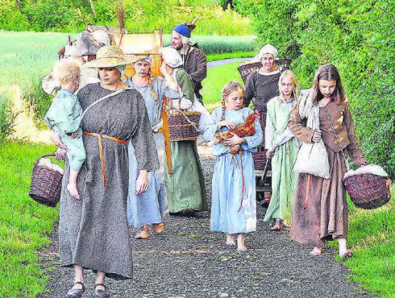 (Eing.) Eine Gruppe Siedler lässt sich vor den Schlosstoren nieder und errichtet hier einen Bauernhof – mitsamt Hühnern und allem, was dazu gehört. Rund 20 Darsteller der Gruppe «abenteuer-zeitreise» nähen, schmieden, flechten und kochen wie das einfache Volk im 12. Jahrhundert. An jedem Wochenende steht ein anderes Thema im Vordergrund: Am Wochenende vom 8./9. Juli dreht sich alles um Ernährung. Die erste Ernte des Gutes wird gedrescht, um Korn für die Mühle zu haben und Brot zu backen. Am 15./16. Juli geht es um…