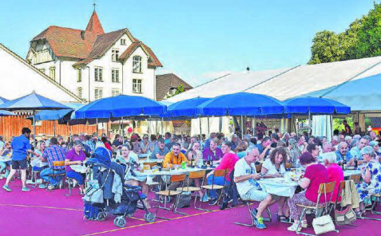 aw. «1949 initiierte die Musikgesellschaft Staffelbach das erste Fischessen. Mangels Servicekräften schloss sich vor zwei Jahren der Handharmonika-Club Staffelbach an», orientierte Örgelispielerin und Organisationschefin des Anlasses. Das sommerliche Wetter spielte den Veranstaltern in die Karten und bescherte volle Tische vor der Mehrzweckhalle. Selbst das Festzelt für ungeplantes Gewitteraufkommen füllte sich in den Abendstunden zusehends. Während die Zanderfilets aus der einen Fritteuse gefischt wurden, lieferte das Frittiergerät nebenan goldbraune Chicken Nuggets, bevorzugt eher von jüngsten Gästen. (Bild: aw)