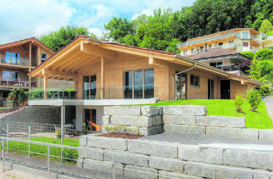 Musterhaus «Kulmer Alpenblick» besticht und überzeugt in vielerlei Hinsicht: Der Baustoff – nachhaltig und natürlich; die Architektur – klassisch und geradlinig mit modernen Elementen; das Ambiente – sehr hell und offen; der Energieverbrauch – niedrig; das Wohnklima – gesund; die Ökobilanz – hervorragend, da die von RAL Gütezeichen zertifizierte CO2-Senkenleistung 34,47 Tonnen beträgt.