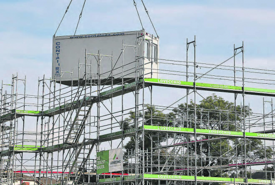 rc. Ob sich Erich Kästner vor 90 Jahren den Flug des Klassenzimmers in seinem Roman genau so vorgestellt hat, darf angezweifelt werden. Dennoch gibt es für dieses Bild eigentlich gar keine andere Überschrift. Nachdem letzte Woche das Fundament für das Schulraumprovisorium in der Menziker Fluckmatt erstellt wurde, «fliegen» derzeit die Elemente über das Baugerüst, die zusammengebaut 13 Schulzimmer bilden. Millimetergenau werden die Container positioniert und zusammengeschraubt, die mit gegen 40 Lastwagenfahrten von Dübendorf nach Menziken verschoben wurden. Jetzt zeigte sich auch, warum die Vorarbeiten schon sehr präzise erledigt sein mussten. Erst wenn alle Teile positioniert sind, wird man mit den weiteren Anschlüssen fortfahren können.