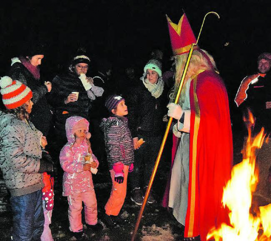 st. Die Kulturkommission «Schlossrued läbt» sorgte auch dieses Jahr für beglückende Momente. Am 6. Dezember wurde der hintere Schulhausplatz in eine Märchenwelt verwandelt, wo tatsächlich in lauschiger Umgebung Märchen erzählt wurden. Noch spannender wurde es allerdings, als ein echter Samichlaus mit seinem Schmutzli auftauchte. Der Schmutzli trug einen grossen, schweren Sack auf seinen Schultern und folgte seinem «Meister» auf Schritt und Tritt, denn alle lieben Kinder erhielten ein Chlaussäckli überreicht. Hot Dogs und verschiedene Getränke vermittelten zusätzlich Adventsstimmung. (Bild: st.)