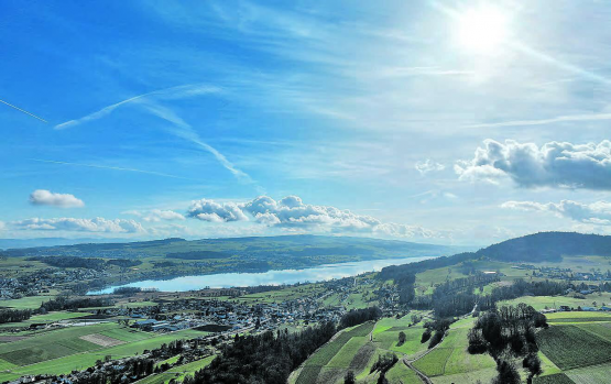 Das frühlingshafte Wetter war in den vergangenen Tagen bereits ungewöhnlich warm. Die Wiesen werden schon grün, als wäre es längst März. So etwas ist für den Februar untypisch, gibt es doch in diesem Monat oft noch bissige Kältewellen. Das Bild wurde von Dürrenäsch aus in Richtung Hallwilersee aufgenommen.