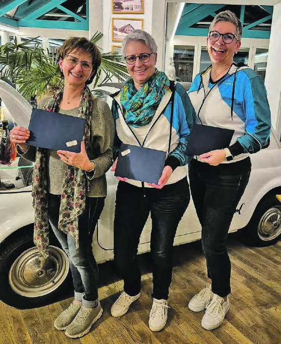 (Eing.) An der Generalversammlung des FTV Staffelbach wurde vorab dem Gründungs- und Ehrenmitglied Lina Morgenthaler mit einer Schweigeminute gedacht. Beim Vorlesen des ereignisreichen Jubiläums-Jahresberichts durch die neue Präsidentin Nicole Felder konnten viele Erlebnisse in Erinnerung gerufen werden. Als Beisitzerin wurde Beatrice De Faveri in den Vorstand gewählt, die unter dem Traktandum Ehrungen wie auch Nicole Felder für 10 Jahre Vereinszugehörigkeit geehrt wurde. Christine Schönbächler und Greti Dätwyler sind sogar schon 15 Jahre dabei. Die vier fleissigsten Turnerinnen Marianne Fehlmann, Hanni Sommerhalder, Ruth Aeschbach und Christine Schönbächler wurden mit einem Geschenkkorb ausgezeichnet. Im Bild: Beatice De Faveri, Greti Dätwyler und Nicole Felder. (Bild: zVg.)