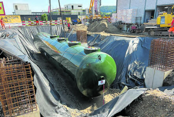 kf. Die Garage Riggenbach beim Kreisel in Hirschthal wird derzeit modernisiert. Vergangene Woche erhielt die Tankstelle einen neuen Benzintank mit enormen Dimensionen: 18 Meter lang und 23 Tonnen schwer. Der 120’000 Liter-Tank ist doppelt so gross wie sein Vorgänger, der beim Neubau 1981 eingebaut wurde. «Durch die vergrösserte Kapazität werden die Wartezeiten für die Kunden kürzer», erklärt Geschäftsleiter Lukas Riggenbach. Der neue Tank ist unterteilt: Er fasst 60’000 Liter «Bleifrei 95», 20’000 Liter «Bleifrei 98» und 40’000 Liter Diesel. Unter Aufsicht von zwei Fachleuten des Kantons wurde der neue Tank vorbereitet und in sein «Bett» gehievt. Anschliessend wurde rundherum mit Spezialsand aufgefüllt. Gegen Ende Jahr soll die neue Tankstelle wieder in Betrieb gehen, wie Lukas…
