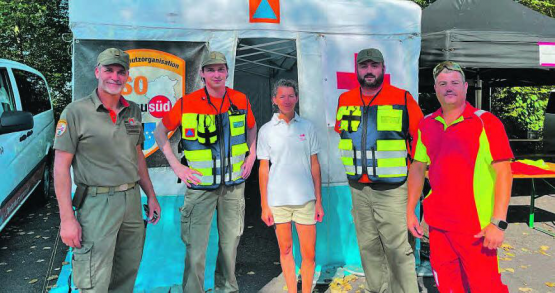 (Eing.) Die ZSO aargauSüd war mit der Sanitätsgruppe am Jubiläumsfest der Böhler-Passstrasse im Einsatz und stellte zusammen mit dem Samariterverein Kulm sicher, dass die zahlreichen Besucher medizinisch versorgt wurden. Die zwei Einsatztage der ZSO wurden in je zwei Schichten eingeteilt und jeweils drei Sanitäter der ZSO waren zusammen mit dem Samariterverein Kulm, unter der Leitung von Marc Hofer, auf dem Festgelände unterwegs. Am Einsatz wurde sowohl ein stationäres Sanitätszelt betrieben, als auch mobile Sanitätspatrouillen auf dem ganzen Perimeter durchgeführt. Glücklicherweise ereigneten sich keine grösseren medizinischen Zwischenfälle und die ZSO Sanitäter sowie der Samariterverein Kulm kümmerten sich mehrheitlich um Wespenstiche, Sonnenbrände und kleinere Schürfwunden. (Bild: zVg.)