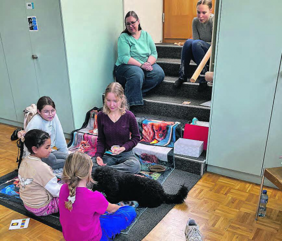 Ehrenamtliche betreuen die verschiedenen Posten, unter anderem sind auch zwei Lesehunde mit dabei, welche angeregt den Geschichten der Kinder lauschen. An jedem Posten gibt es einen Kleber in den Club-Ausweis.