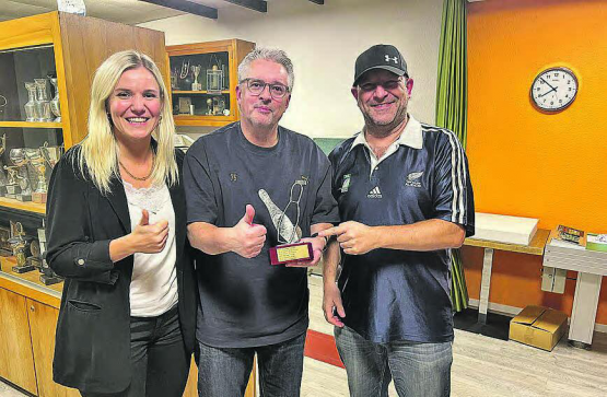 rms. Bis zum Dezember 2021 führten jeweils die Solothurner SportjournalistInnen traditionell ihr Chlaus-Kegeln durch. Nach der Fusion mit den Aargauer SportkollegInnen übernahm der neu gegründete Verein Sportpress AG-SO diesen beliebten Anlass im Gasthof Linde in Mühlethal-Zofingen. «Nun steht schon wieder ein Solothurner zuoberst auf dem Podest», witzelten ein paar Teilnehmer an der Siegerehrung. Auf Mitorganisator, Vorstandsmitglied und Titelverteidiger Raphael Galliker (rechts) folgte im diesjährigen Kegeln Roland Kündig (Mitte). Vorstandsmitglied Jasmin Langenegger sorgte mit ihren guten Beziehungen für einen ansehnlichen Gabentempel, so dass auch der leitende WB-Redaktor Roland Marti trotz seiner Platzierung in den Niederungen der Rangliste nicht leer ausging. (Bild: zVg.)