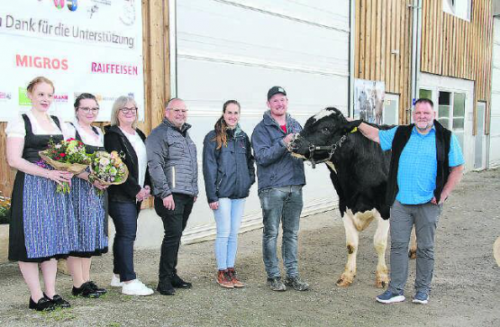 rms. Umrahmt von (v.l.) Ehrendamen, Sonja und Mario Schlatter vom Lebendpreissponsor Rudolf Maurer AG, Gontenschwil, Besitzer Salome und Sämi Stadler sowie Götti Josef Bergmann, ehemaliger eidgenössischer Kranzschwinger und Ehrenmitglied des Schwingklubs Kreis Kulm, ist am vergangenen Freitagabend der Siegermuni des Aargauischen Kantonalschwingfests vom 20. bis 22. Juni in Menziken getauft worden. Der prächtige, gut zweijährige Holstein-Zuchtstier mit guter Abstammung erhielt den Namen Menzo. Besitzer Sämi Stadler, einst selber aktiver Schwinger und heute noch über seinen eigenen Nachwuchs mit dem Schwingsport verbunden, hat mit seinem Muni auf dem Kasernhof ein Spezialprogramm absolviert, um ihn bestmöglich auf seinen Auftritt in der lärmigen Schwinger-Arena vorzubereiten. Ebenfalls…