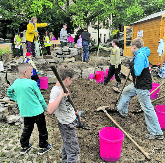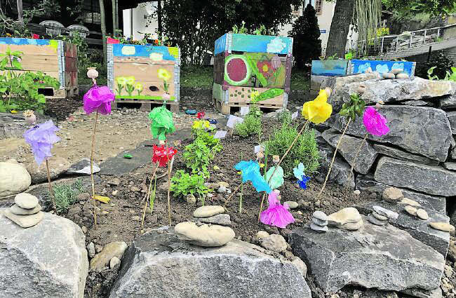 (Eing.) Zahlreiche Schülerinnen und Schüler aller Jahrgangsstufen beteiligten sich mit grossem Engagement an den vielfältigen Arbeiten im und rund um den Garten. Dabei entstanden unter anderem kunstvoll bemalte Steine, die den Garten bunt und einladend machen, Vogelhäuser und Nisthilfen, die heimischen Vögeln ein Zuhause bieten, ein Barfussweg, der die Sinne anspricht und zur Achtsamkeit einlädt, Hochbeete, die mit Gemüse und Blumen bepflanzt wurden, Weidenzäune und Benjeshecken, die Lebensräume für Tiere schaffen und eine Kräuterschnecke, die duftet und Wissen über Pflanzen vermittelt.