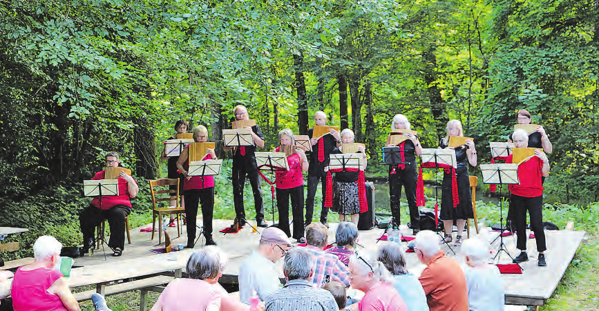 Bei den Sommer-Serenaden in Zetzwil bot die zehnköpfige Gruppe der Panelodie den Zuhörerinnen und Zuhörern mitten in der Woche eine Stunde melodische Entspannung im idyllischen Waldstück bei der Wuhrhütte.