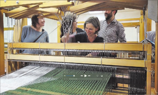 rms. Im 3. Obergeschoss des landwirtschaftlichen Zentrums Liebegg stehen sieben fixfertig eingerichtete Webstühle, die es zu bewegen gilt. Das tut seit April dieses Jahres Johanna Eschmann (Bildmitte) mit ihren Webkursen. Sie lud am Samstag vergangener Woche zum Kurs «Handweben entdecken und erleben» ein. Der Einladung folgten rund ein Dutzend Interessierte, die sich − falls nötig unter kundiger Anleitung − ans Werk wagten. Nach gut einer Stunde verstummte das rhythmische Klappern der Webstühle und die Anwesenden wurden vom virtuosen Geigenspiel von Andrei Harabagiu umwoben.