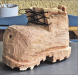 Unerwartet bekomme ich am gleichen Tag noch die erfreuliche Nachricht, dass es keine grossen Reparaturen waren und die Motorsägen wieder einsatzfähig sind. Dazu schickt er mir ein Bild von einem fertig geschnitzten Wanderschuh, den der Holzkünstler zur Probe am gleichen Tag noch gefertigt hat. Wohlgemerkt war dies auch für ihn der erste Schuh. Ein bemerkenswertes Tempo und ein grossartiges Endergebnis, was in mir die Vorfreude, an meinem Wanderschuh weiterzuarbeiten, noch mehr steigert. Wir vereinbaren die Fortsetzung gleich für den nächsten Tag.