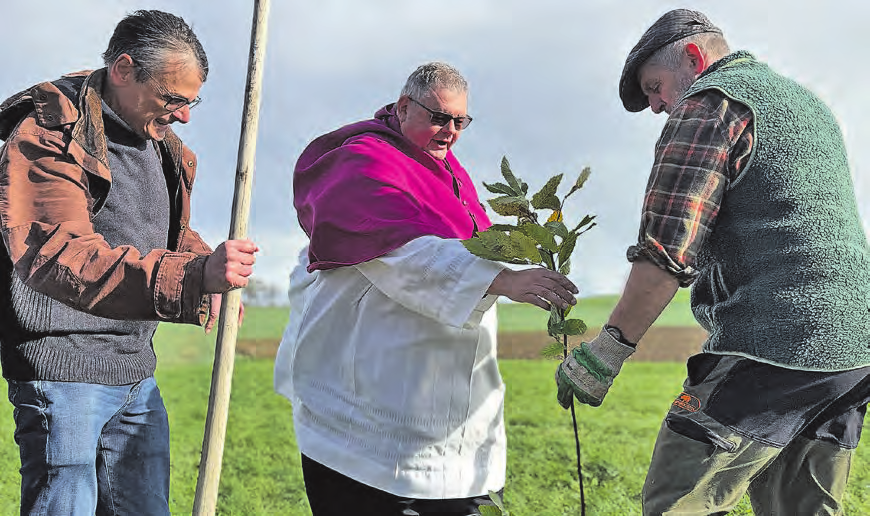 (Eing.) Sturm «Benjamin» begleitete am vergangenen Donnerstag die diesjährige Baumpflanzung des 2014 gestarteten Poesiesommer-Kulturprojekts Europawäldli mit heftigen Böen. Propst Harald Eichhorn hielt der Wetterunbill stand und half beim Pflanzen einer Edelkastanie tatkräftig mit, als Förster Robi Suter und Europawäldli-Initiant Ulrich Suter im Rahmen des Seetaler Poesiesommers die diesjährigen Bäume im fruchtbaren Boden hinter dem Landessender Wurzeln schlagen liessen. Die Edelkastanie wurde zu Ehren des Vatikanstaats ausgelesen, ein Spitzahorn, dem Wanda Marti Patin stand, steht für…