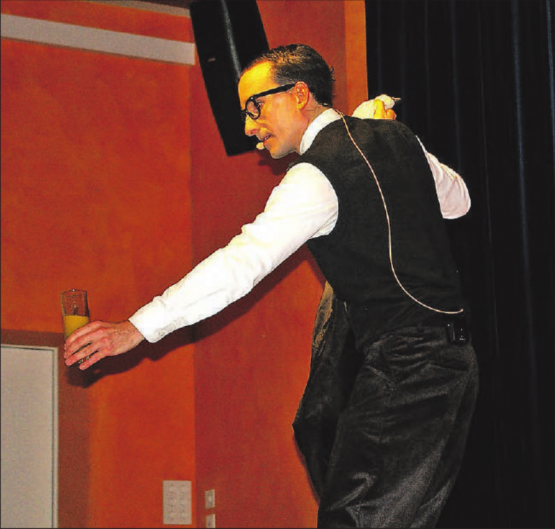 Er begann ganz harmlos mit einem leeren Papiersack und dem roten und weissen Tüchlein... ein einfacher Trick, meint man, doch so charmant kann ihn nur Erwin vorzeigen. Ja, dann kommt er, der berühmte Flaschentrick, um den ihn gewiss alle Leute beneiden. Er schafft es, aus einer Weinflasche deren sechs hervorzuzaubern. Man kommt aus dem Staunen nicht heraus. Erwin redet und redet und zeigt so nebenbei die verrücktesten…