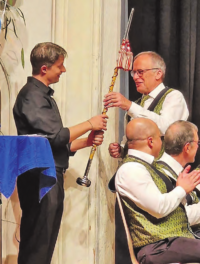 (Eing.) Ein letztes Mal verbeugte sich Dirigent Mirco Gribi vor dem Publikum im Löwensaal. Nach 12 Jahren erfolgreichen Wirkens in der Musikgesellschaft wurde er von seinem Verein herzlich verabschiedet. Zwischen den einzelnen Musikstücken erhielt er von den Musikantinnen und Musikanten kleine Überraschungen, die ihn an seine Zeit in Böju erinnern werden.