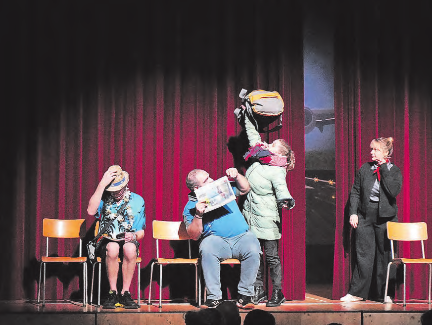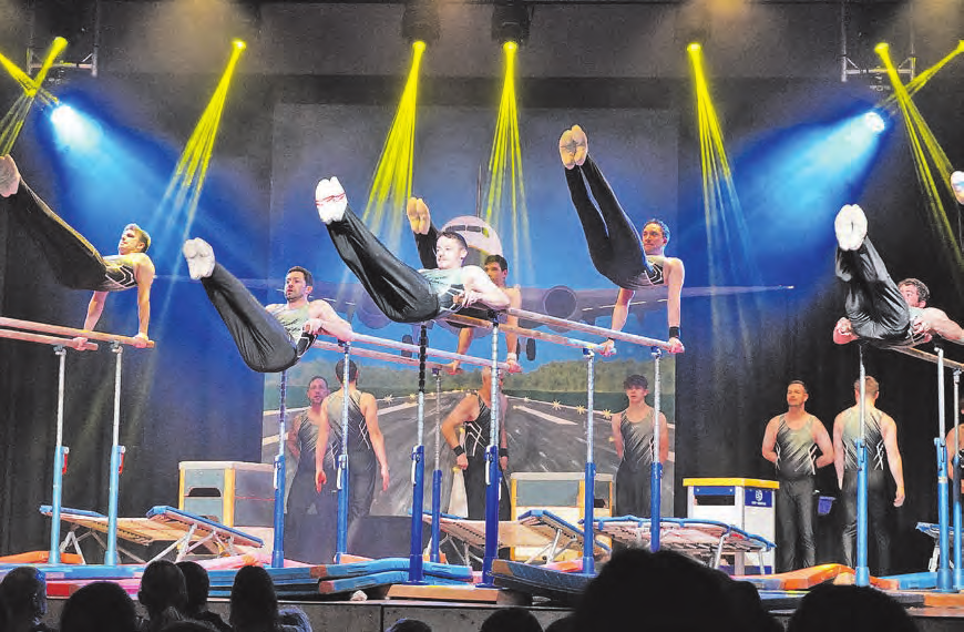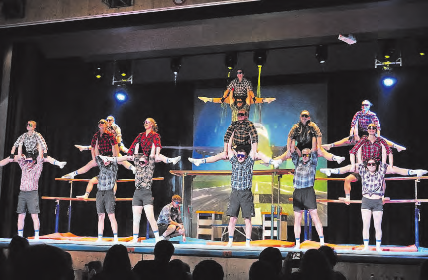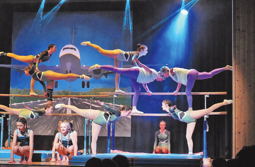 Auch die weiteren Nummern begeisterten die Zuschauerinnen und Zuschauer, denn egal ob Tanz oder akrobatische Turnnummer, der rote Faden des Fliegens zog sich konsequent durch das Programm. Dazwischen überbrückte die Moderation des Sketch-Teams auf humorvolle Art und Weise die Zeit, die für den Umbau der Bühne benötigt wurde. Von einem glücklichen Gewinner einer Flugreise über das Packen des Koffers mit mehr oder weniger sinnvollen Gegenständen bis hin zur eigentlichen Flugreise wurden alle möglichen Situationen abgedeckt, die es rund um das Fliegen geben kann.