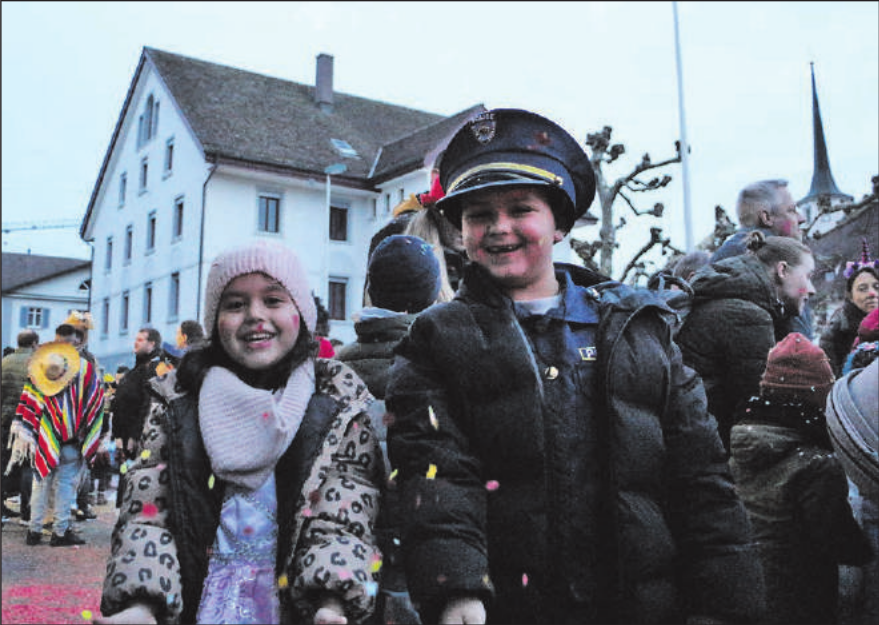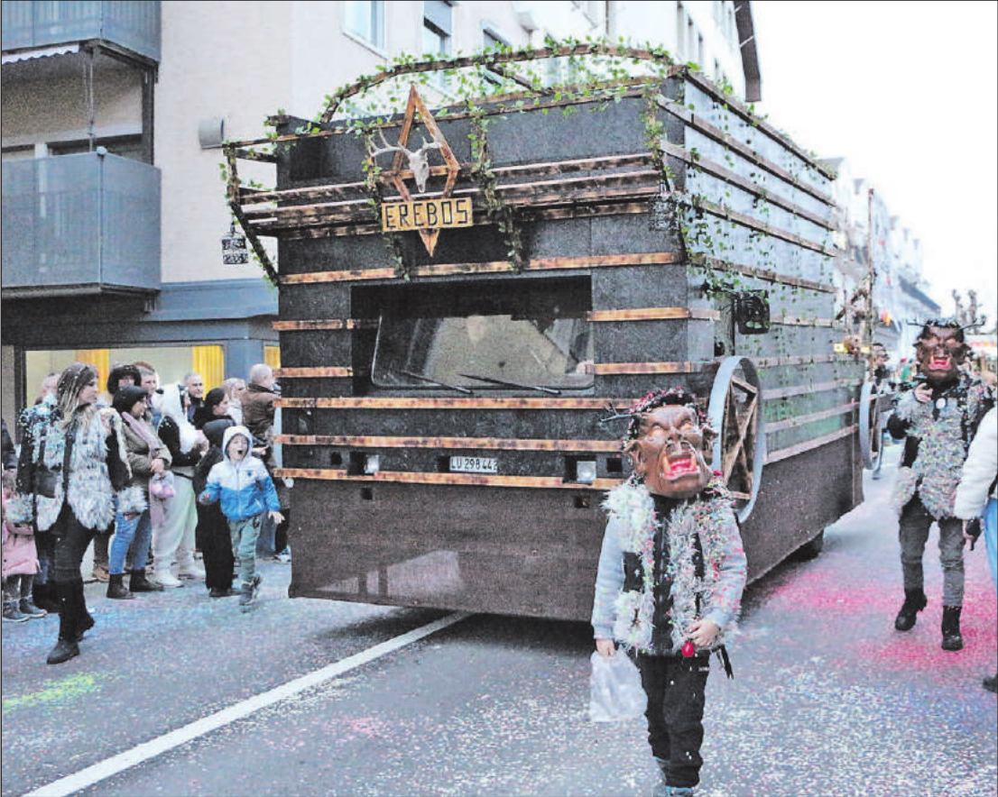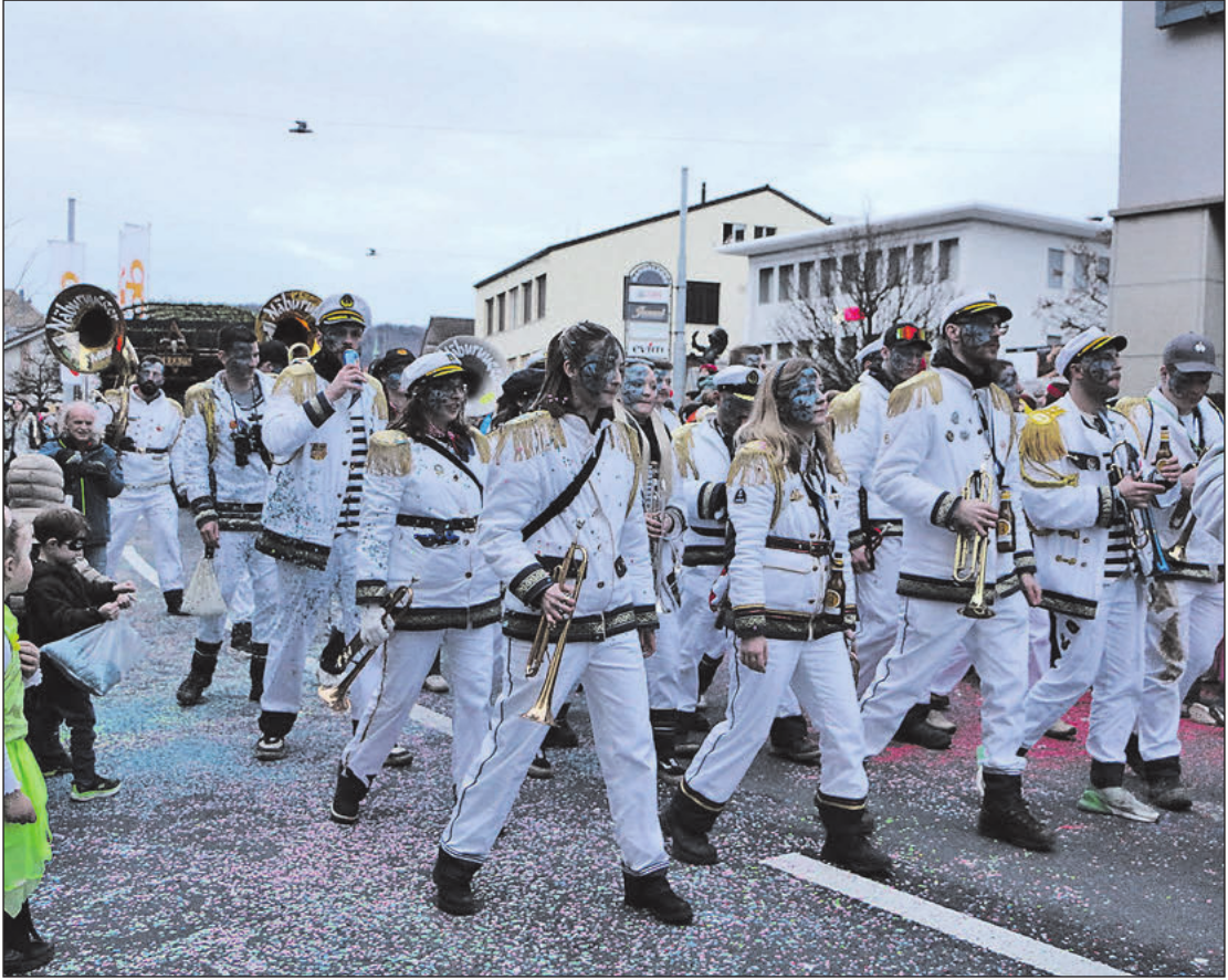 Der Hauptstrasse entlang versammelten sich immer mehr Fasnachtsfans dicht aneinandergereiht, um einen bestmöglichen Blick auf die Guggenmusik samt Wagen zu haben. «Kommt, wir stellen uns hier hin. Hier haben wir einen guten Blick auf die Wagen», sagte eine Mutter liebevoll zu ihren Kindern. Unverkennbar, dass die drei zusammengehören. Ihre Gesichter waren fantasievoll mit bunten Sternen und viel Glitzer geschmückt.