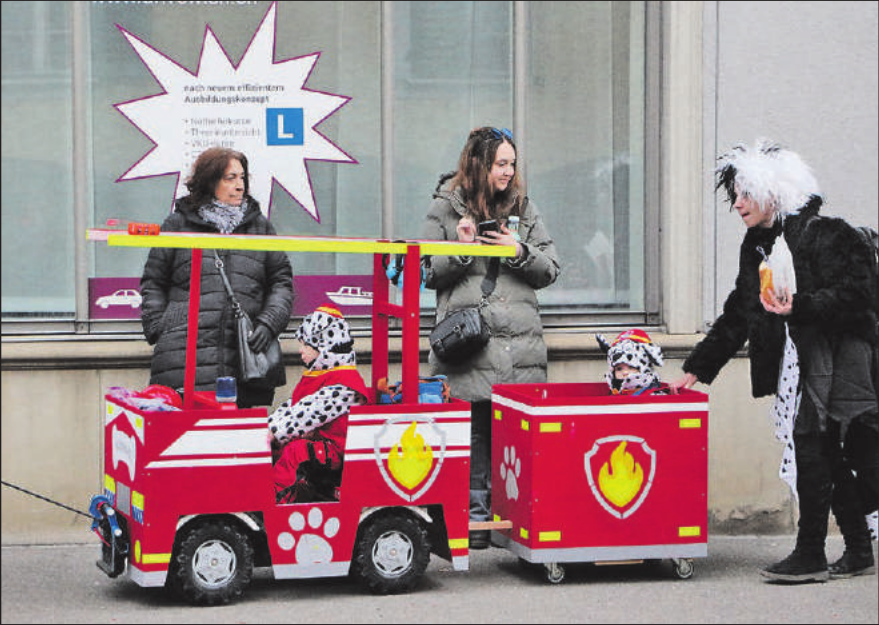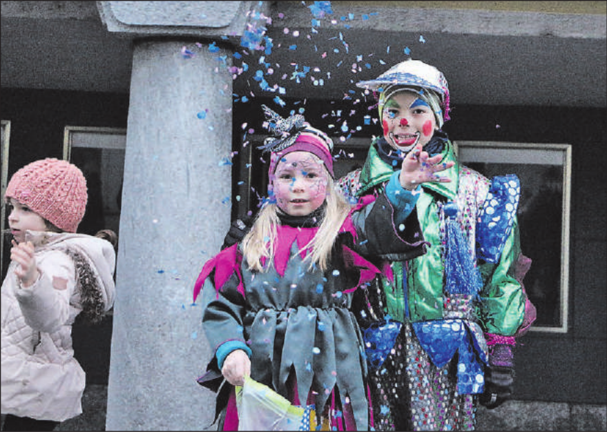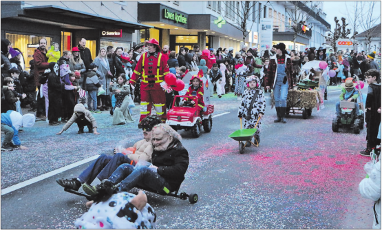 Es gab eine Vielzahl an originellen Verkleidungen zu bestaunen. Lustige Erdbeeren, coole Polizisten, flauschige Mäuse, prächtige Schmetterlinge und viele mehr verbreiteten gute Laune. Die Strasse wurde derweil gesperrt, doch der Umzug liess noch eine Weile auf sich warten. Die jungen Besucher nutzten die einmalige Gelegenheit und verwandelten die Hauptstrasse in einen grossen Spielplatz. Fangen spielen, quatschen und natürlich Konfettischlachten waren angesagt. Während andere bereits die ersten Papierschnitzelchen aus den Haaren pulten.