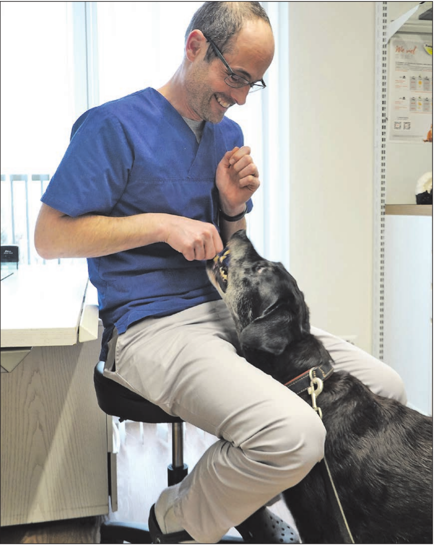 Einem Hundeblick kann man nicht widerstehen. Auch Therrys hochgezogene Augenbrauen verpassen ihre Wirkung in der Kleintierpraxis nicht. Etwas unsicher auf den Beinen wartet er der Dinge, die da kommen werden. Die aufmunternden Worte seiner Halterin beruhigen den zweijährigen wuscheligen kleinen Rüden. Auf dem Behandlungstisch geniesst er die Streicheleinheiten. Die emotionale Bindung zu seiner Besitzerin ist gross. Einfühlsam nimmt Tierarzt Raphael Küng die Untersuchung vor. Denn bald steht mit der operativen…